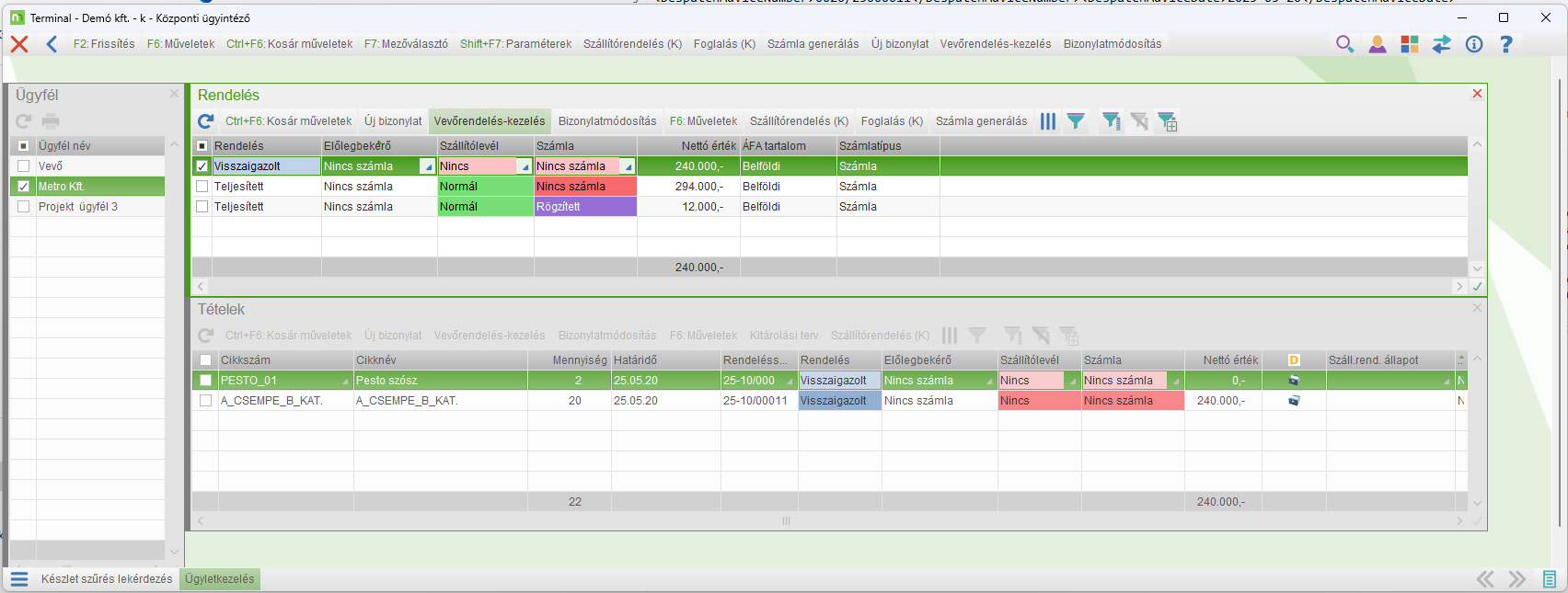 A kiszállításra váró rendeléseket strukturált formában nyíik lehetőség lekérdezni. A beépített Műveletek segítségével elkészülhet a szállítólevél. -> Bővebben