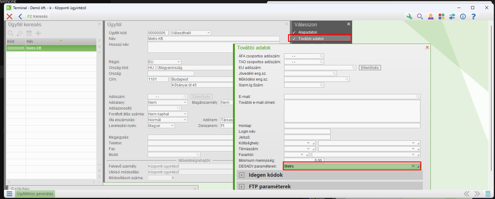 Az ablakból történő kilépésre a DESADV állomány azonnal elkészül.