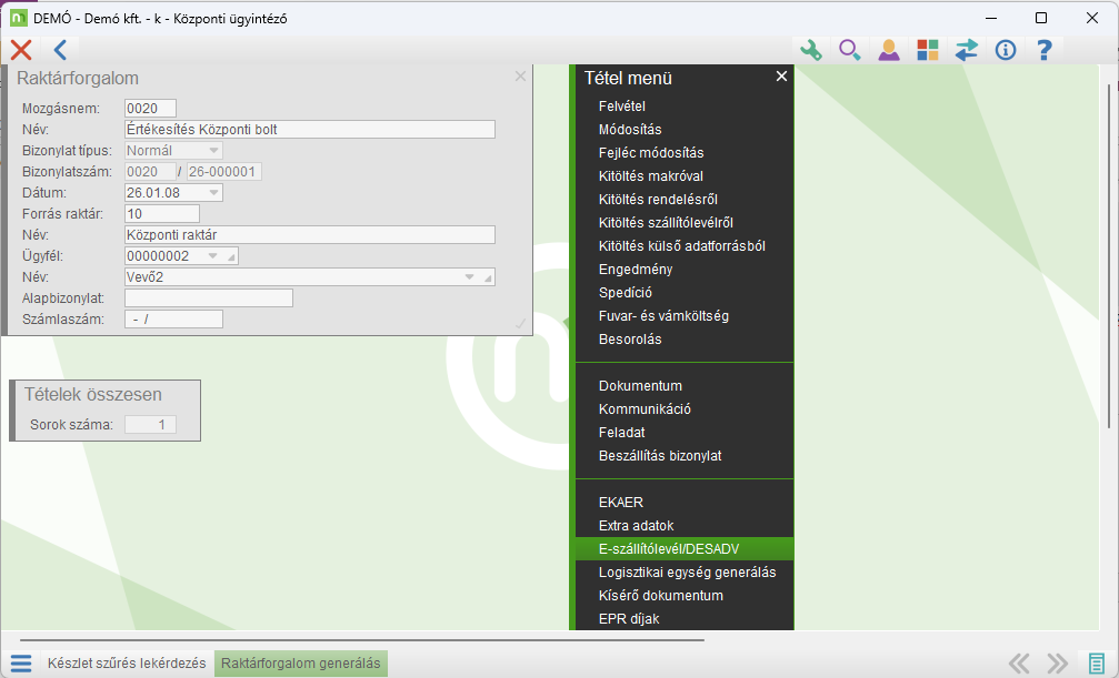 A raktárforgalom generálás DESADV generálására azután nyílik lehetőség, hogy a szállítólevél alapján a Logisztikai egységek elkészültek.