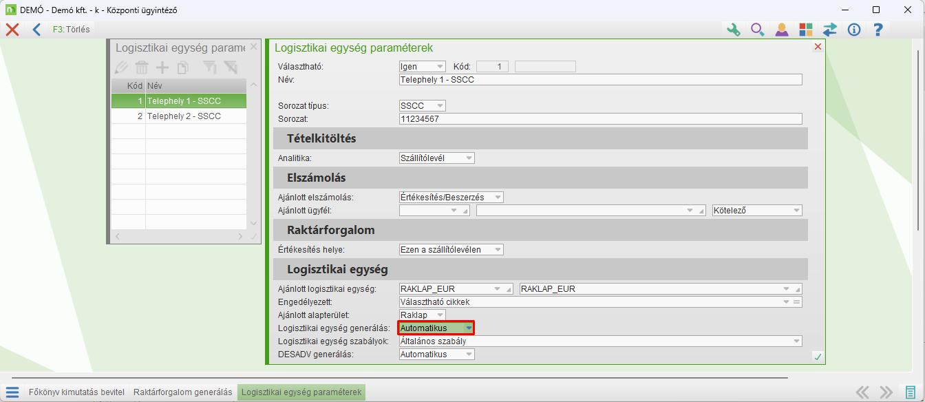 Logisztikai egység generálás (RakodásiE, RakodásiEKap, RaktForgHead) |