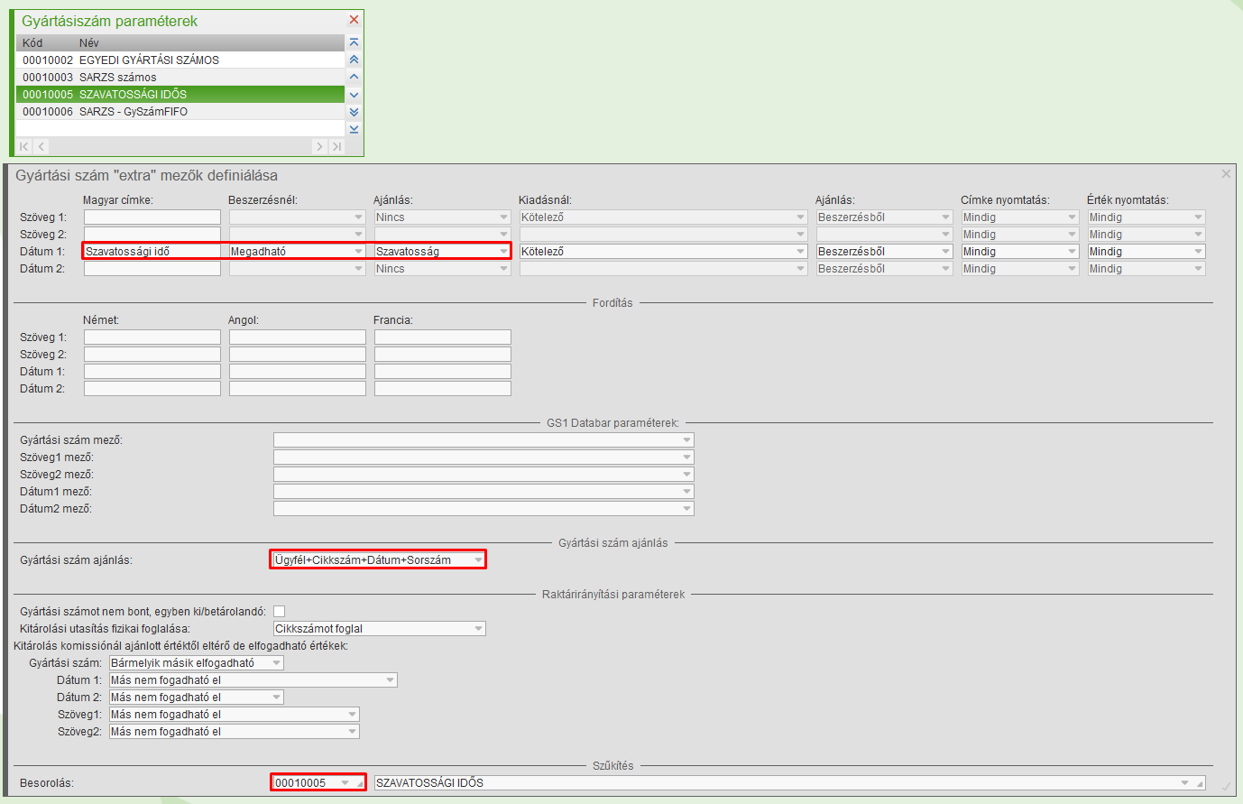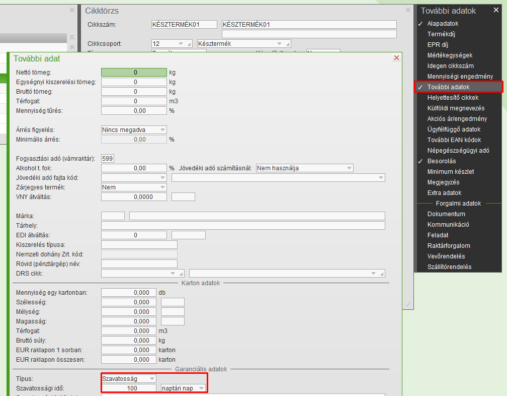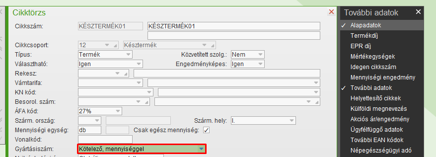 Viszont a mennyiséget és az automatikusan felhasznált gyártási számot le lehet módosítani.