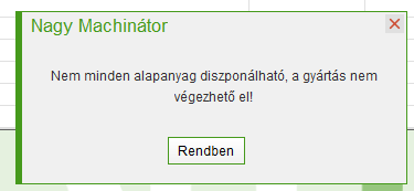 Jelen esettanulmányban egyáltalán nincs alapanyag a készleten, az alábbi üzenet jön