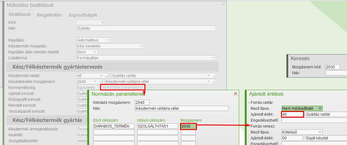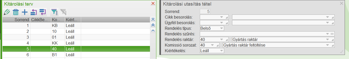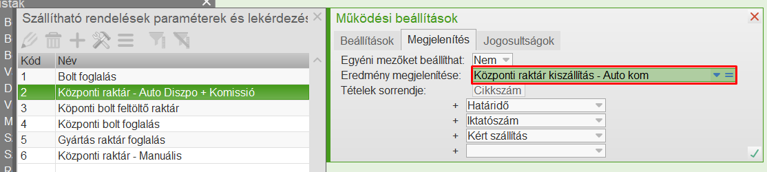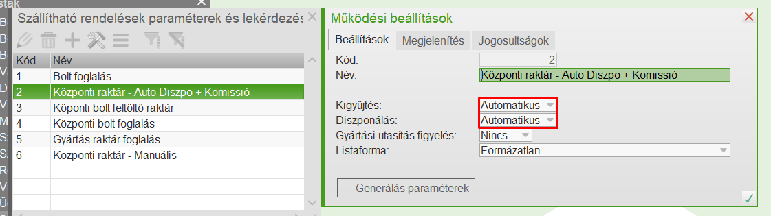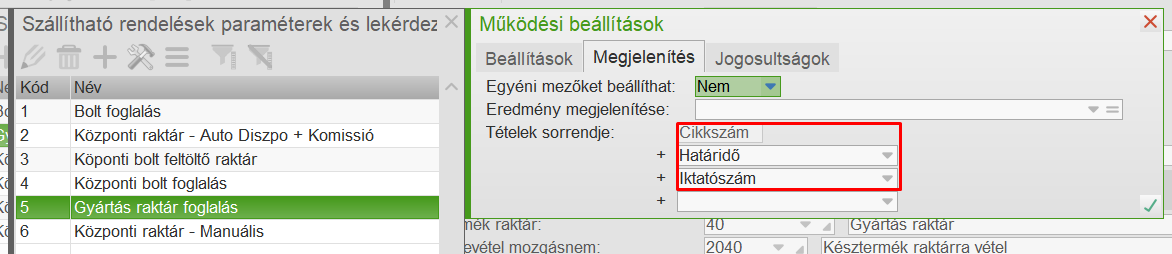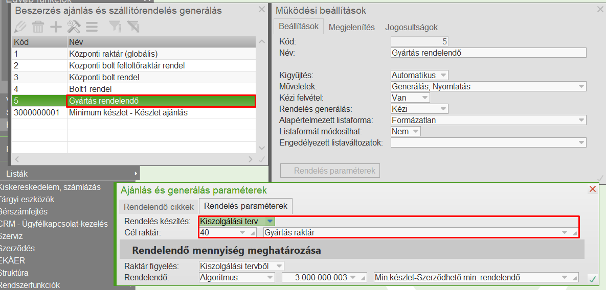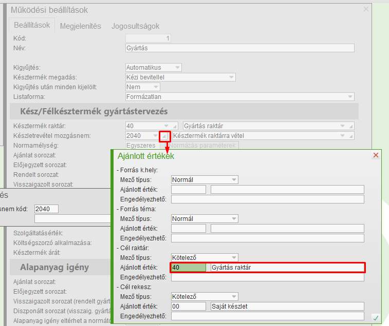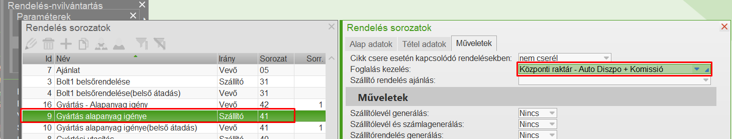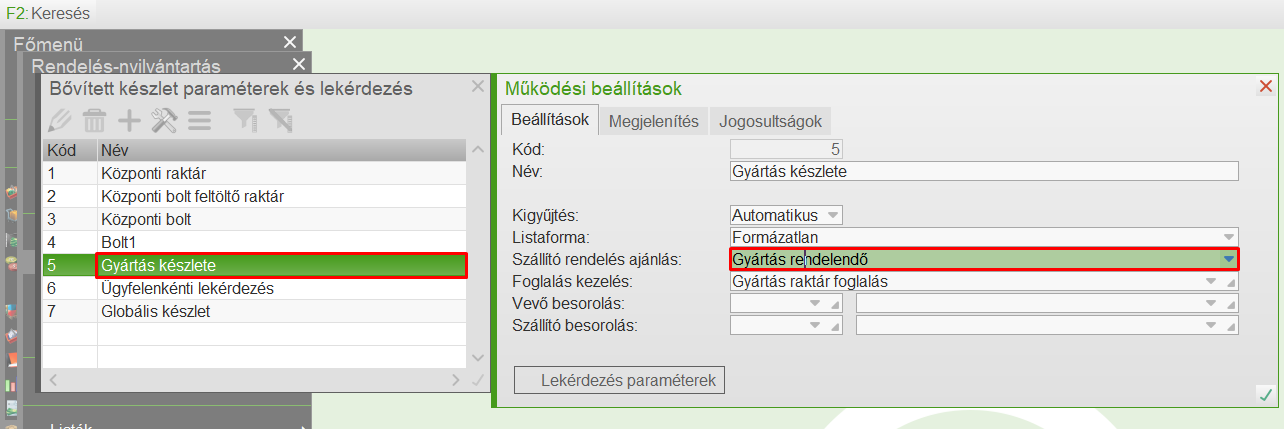Igény esetén beállítható, hogy a belső rendeléssel megrendelt áru automatikusan lediszponálódjon az alapanyag raktárban.