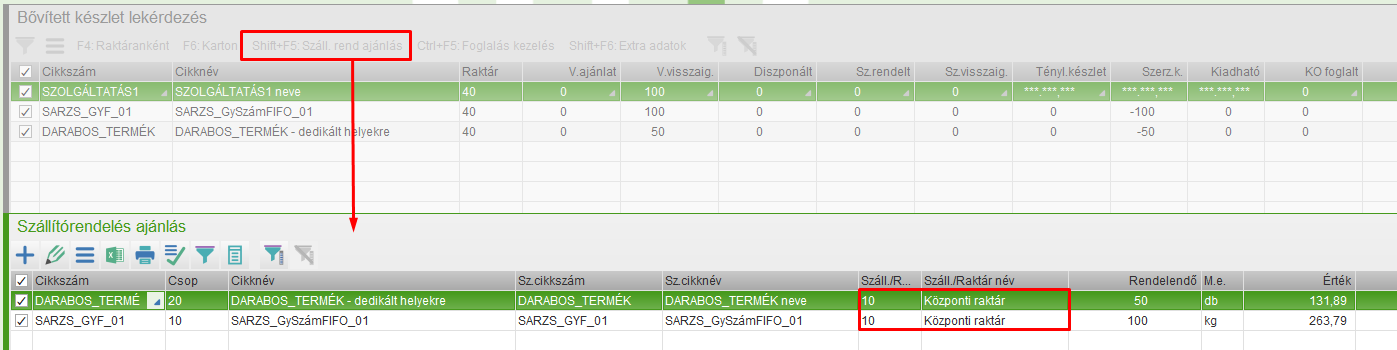 Ennek eredményeként az alapanyag rendelés számára le lehet foglalni az átszállított árut.