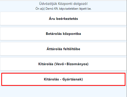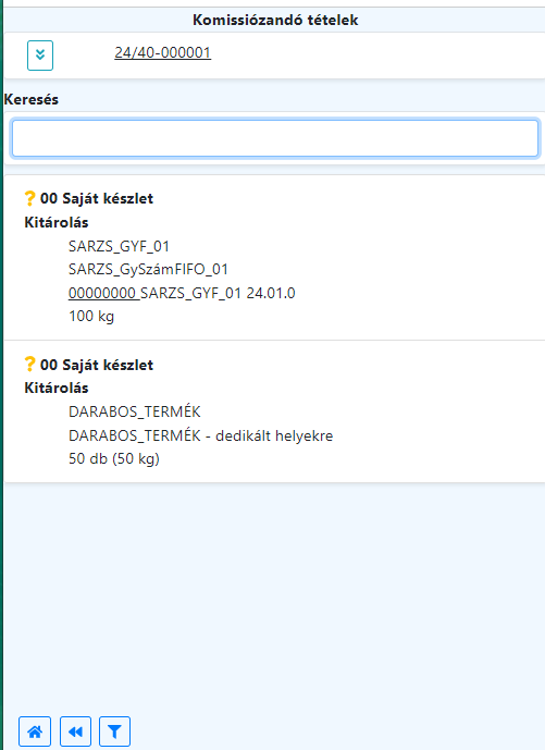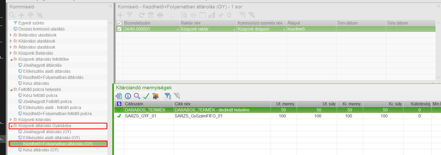 Az alábbi működési beállítás esetén, amint a Komissiózó befejezi a kiszedést, az áru azonnal megjelenik a Gyártás raktár készletén.