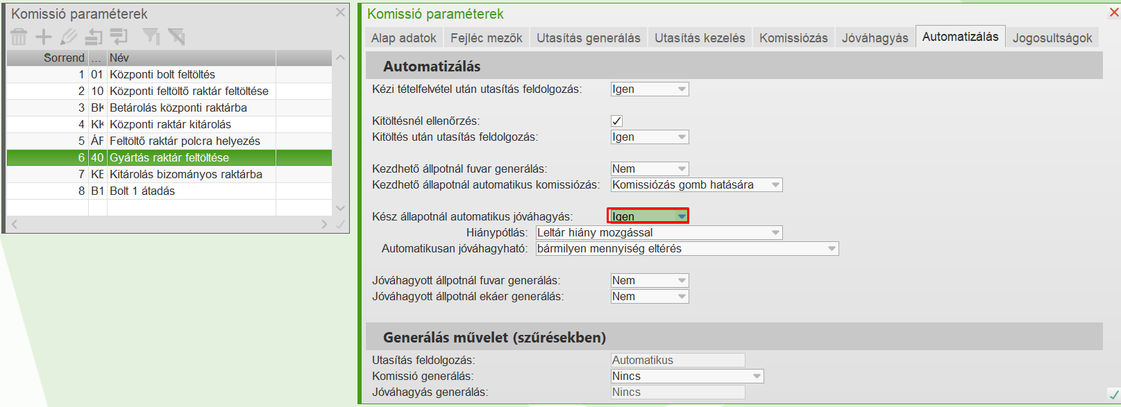 Amennyiben az áttárolás jóváhagyása automatikus, a foglalást is automatikusra érdemes beállítani.