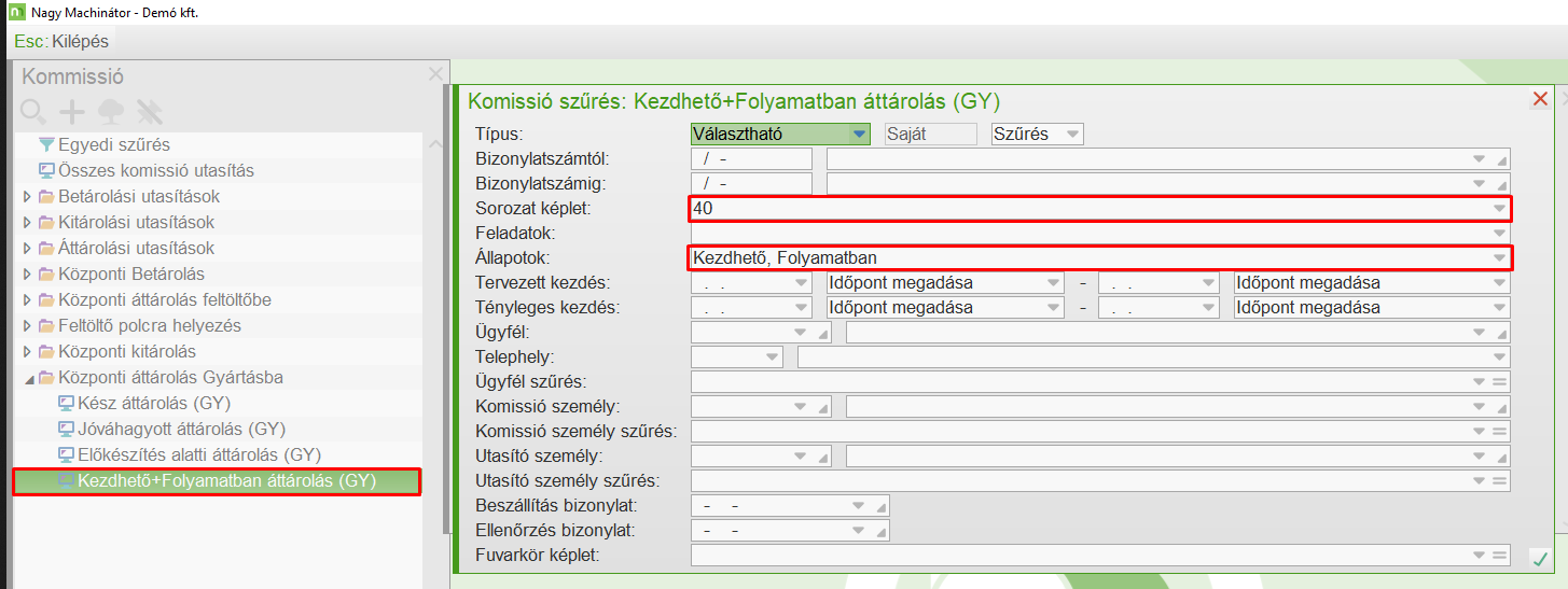 A gyártási utasításokra vonatkozóan bármikor elindítható a foglalás (diszponálás) művelet.