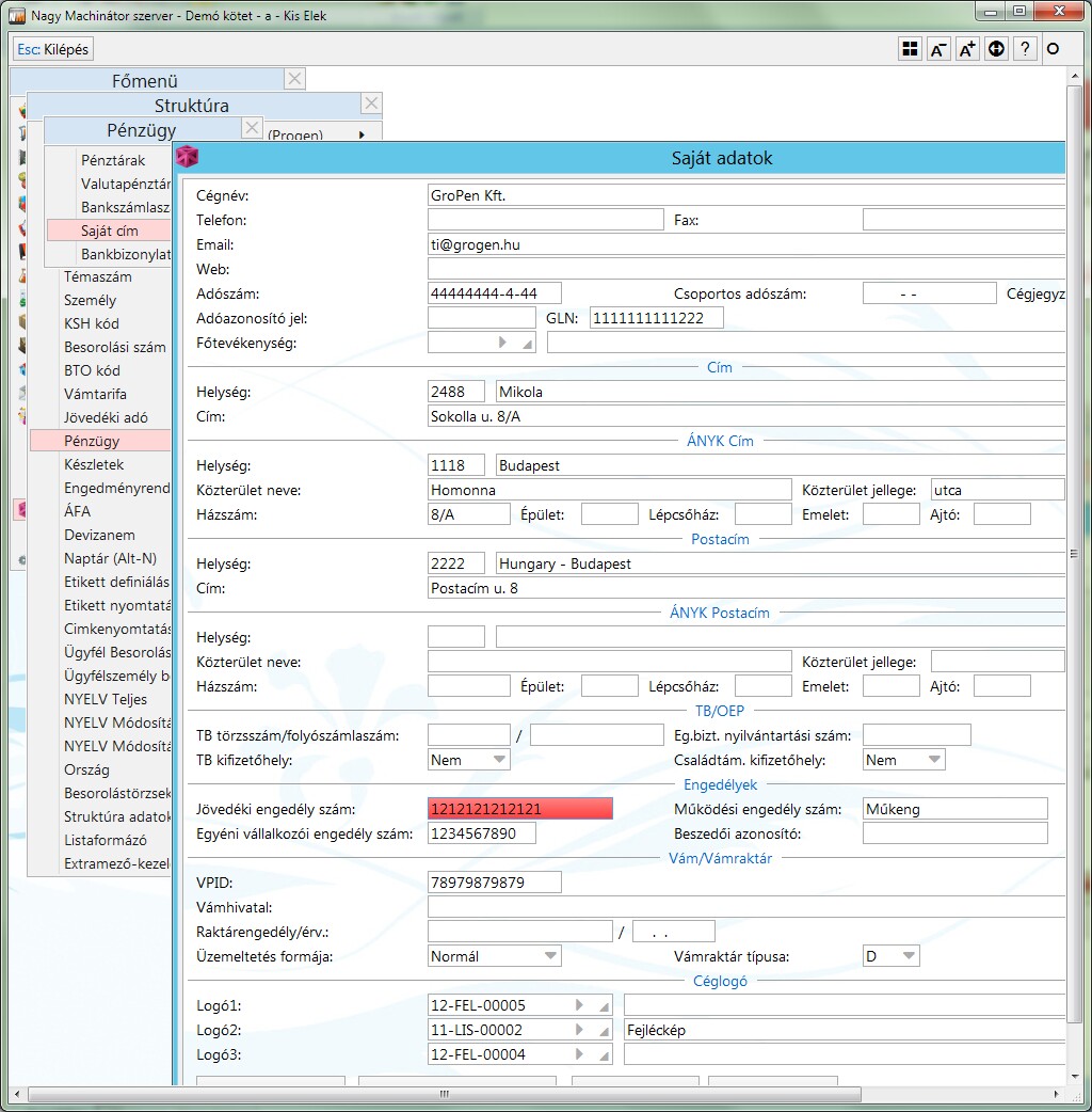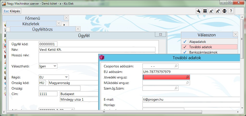 Az ügyfél engedélyszámait az ügyféltörzs / további adatok menüpontban kell megadni.