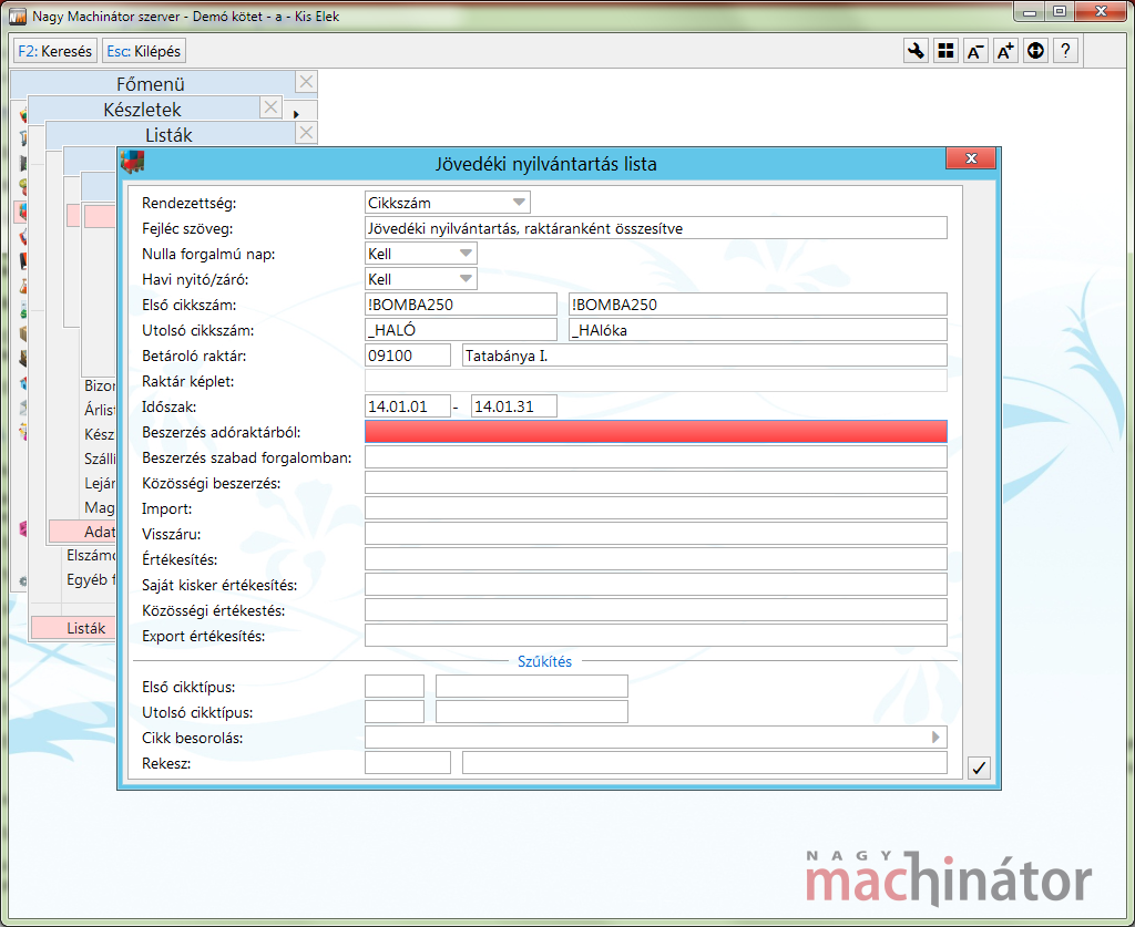 A program a sztornírozás során a a FeltöltésMn paraméterben megadott mozgásnemmel fogja az árut visszatárolni a jövedéki raktárba.