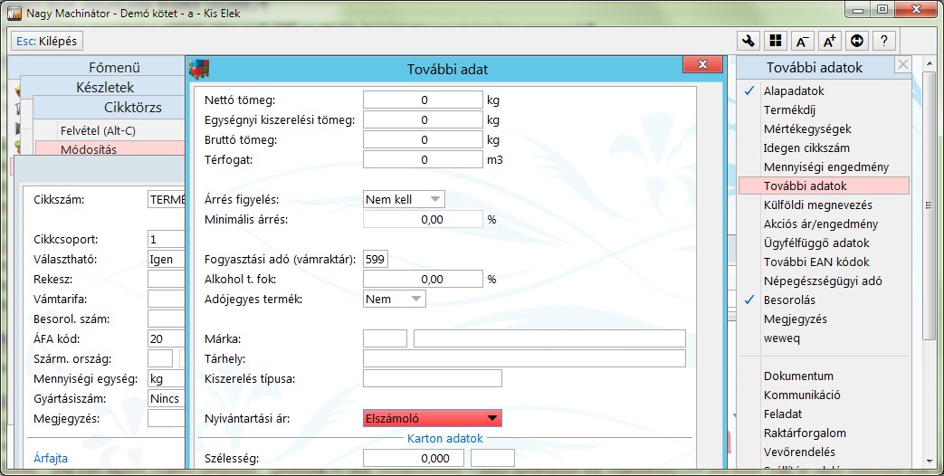 Előnye: - Termékenként más és más lehet a nyilvántartási ár algoritmus. - Amit termékre megadunk az az összes menüben érvényre jut.