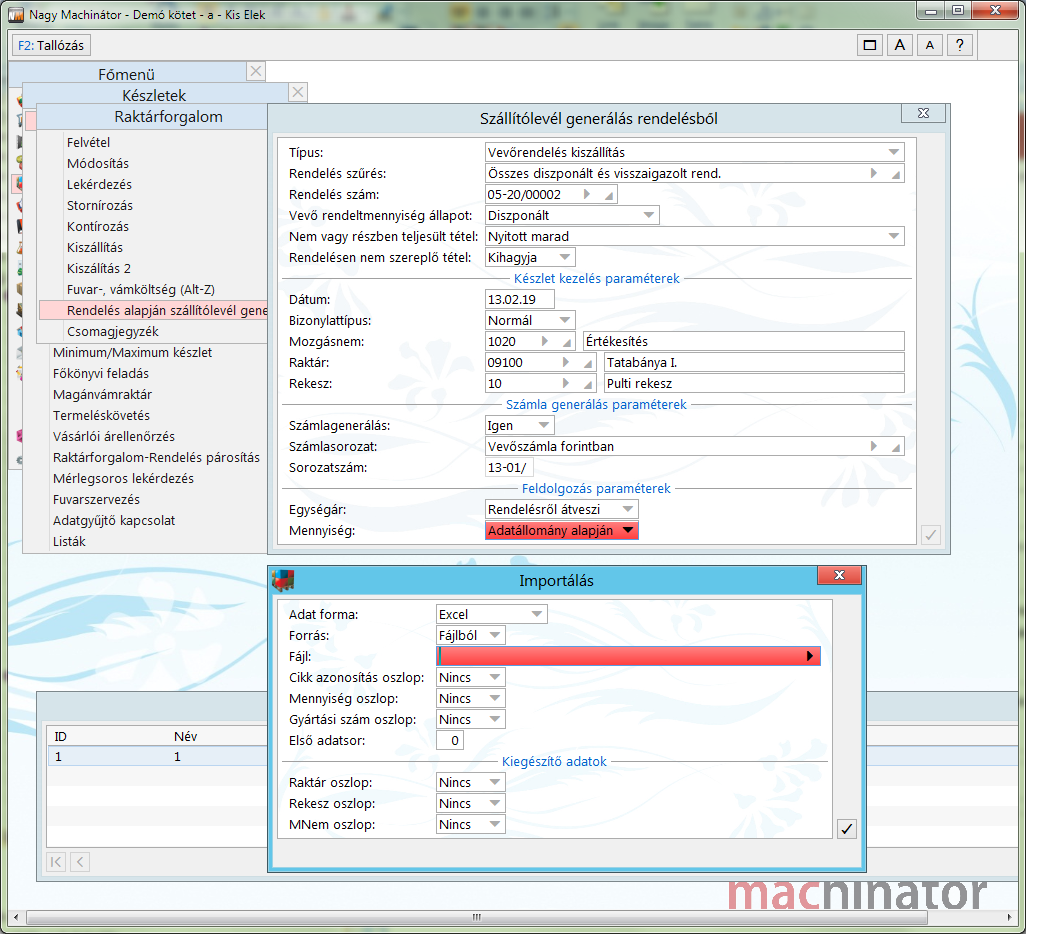 A program támogatást nyújt arra a munkafolyamatra, amikor a mozgatott áruk jegyzéke valamilyen adatformátumba áll rendelkezésre (Excel, XML, Adatgyűjtő).