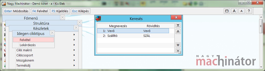 A típusok felvételére azért van szükség, hogy egy saját cikkhez több idegen cikkszámot tudjunk rögzíteni. Az egyes idegen cikkszámokat a típus fogja megkülönböztetni egymástól.