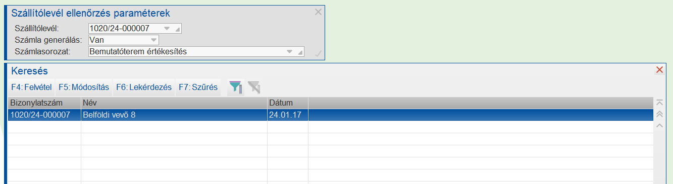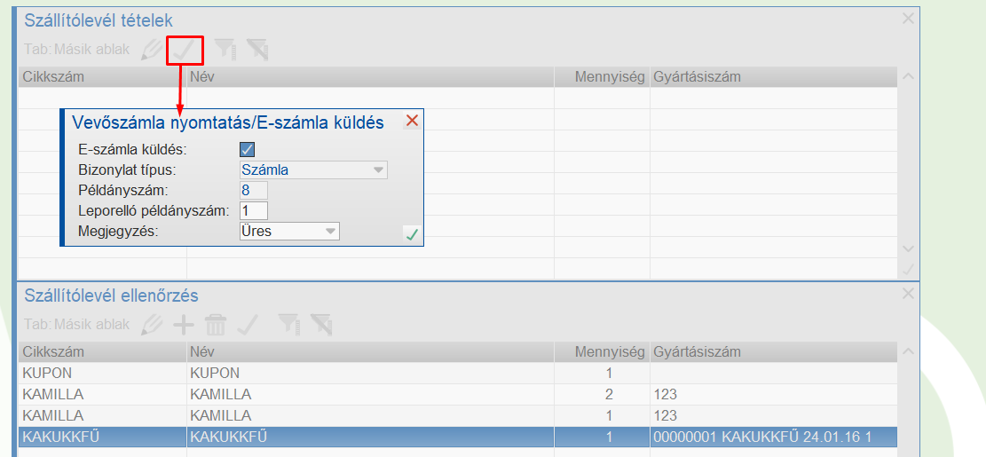 szintén a kódban található gyártási szám alapján megtörténik a felvétele az alsó ablakba.