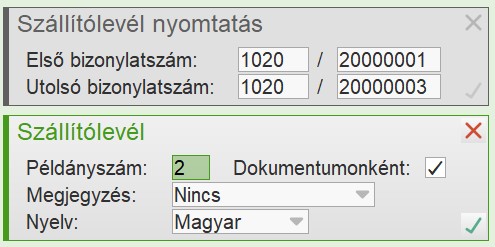 Formázott szállítólevél esetében a kapcsolóval a több bizonylat több példányban történő nyomtatása szabályozható.