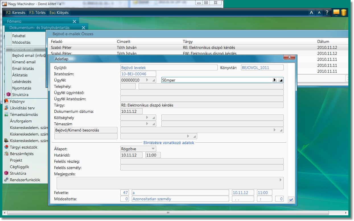Ugyanis a Dokumentum- és Iratnyilvántartás modulba kerülnek iktatásra az emailek .msg állományai.