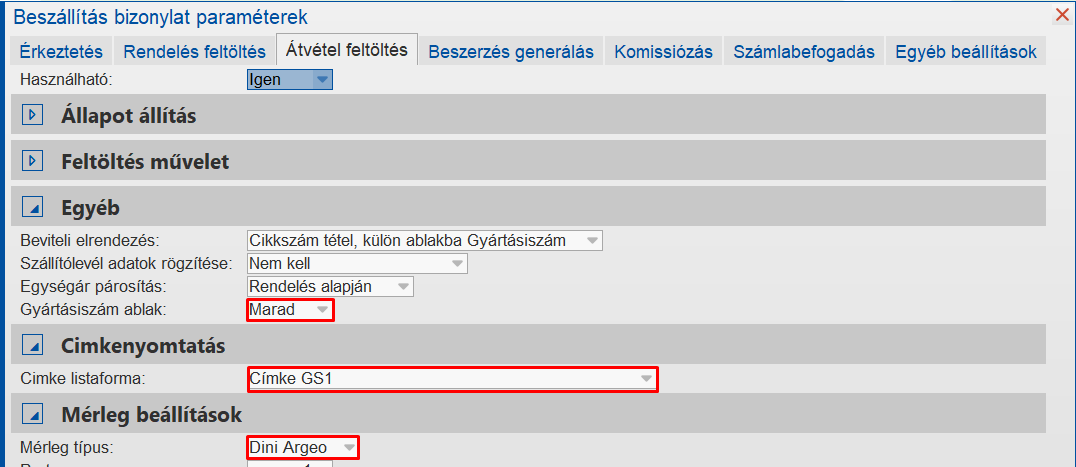 A Nagy Machinátor gyártási szám kezelésében (lásd Gyártási szám paraméterek), rendelkezésre álló lehetőségek közül a következő beállítás kerül alkalmazásra.