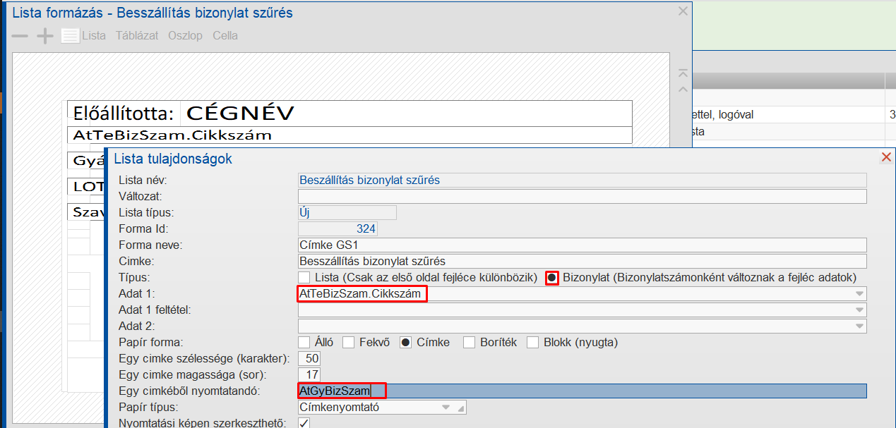 Továbbá el kell dönteni, hogy milyen GS1 kódot nyomtasson a program.