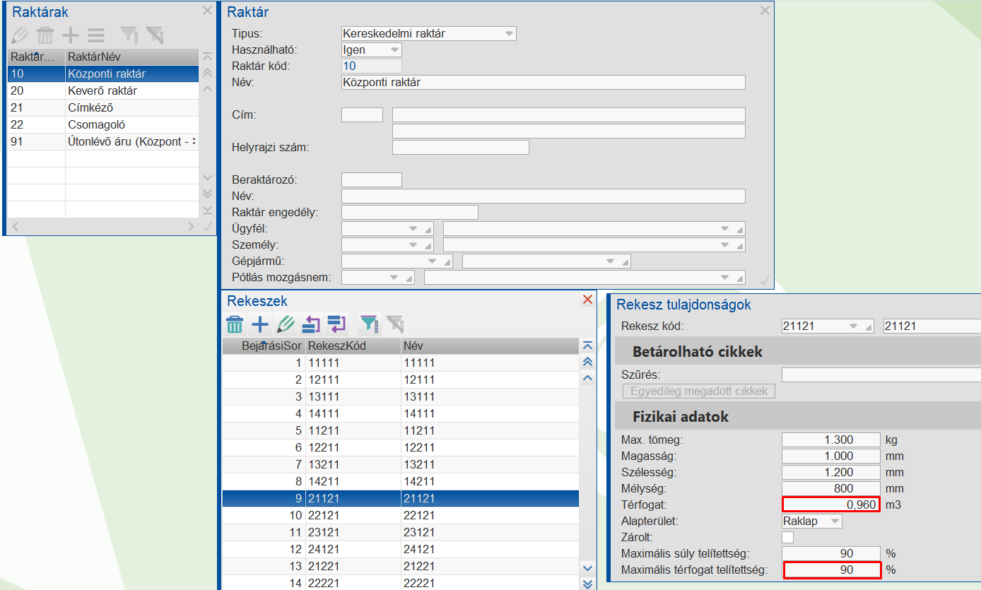 - a betárolandó termékünk térfogata 0,018m3/kg -> vagyis egy tárhelyen maximum 48kg (0,864/0,018) lehet