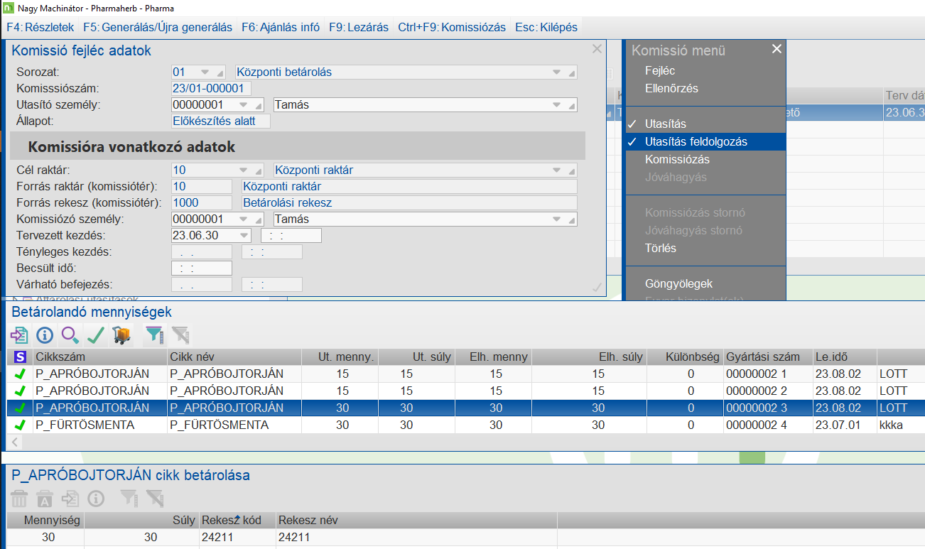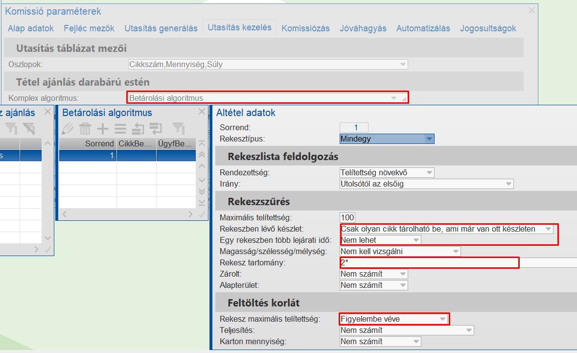 a programmal betárolási utasítást lehet generáltatni, amelyben meghatározza, hogy mely raktárhelyekre lehet az árut behelyezni (lásd Betárolás rekesz ajánlás esettanulmány )