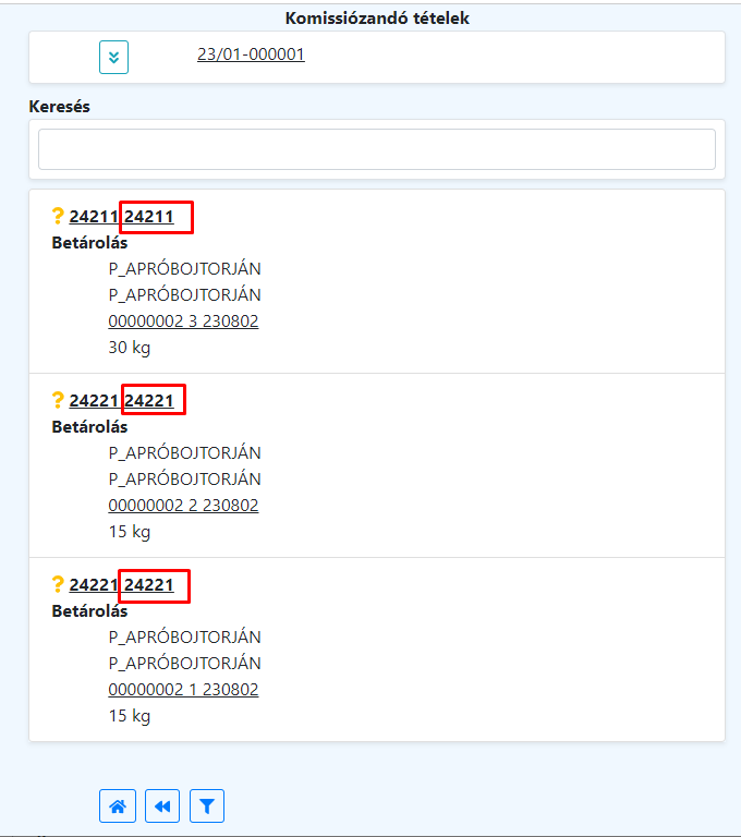 Minden egyes zsák egy egyedi belső azonosítót kap a rendszertől.