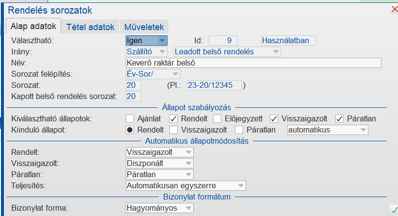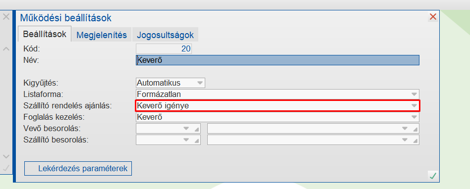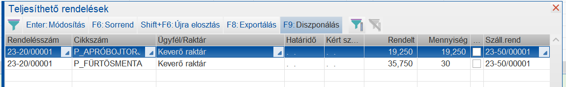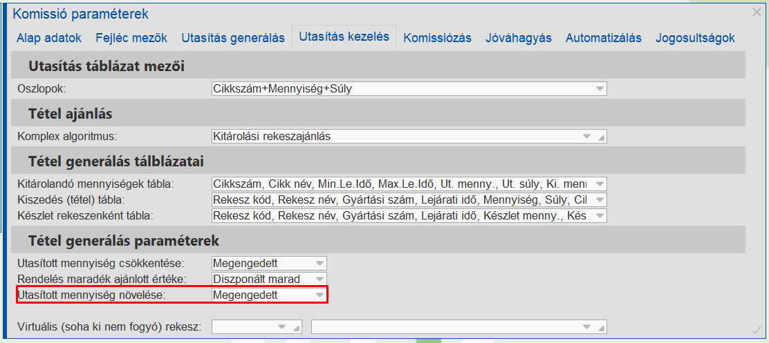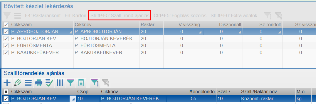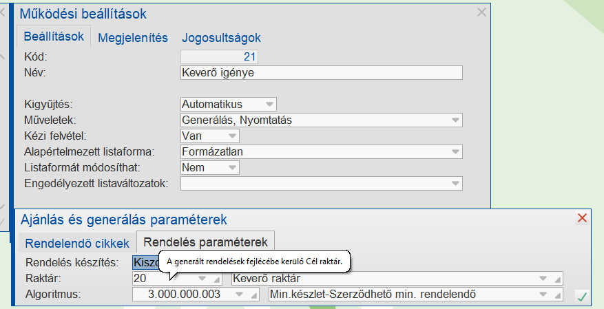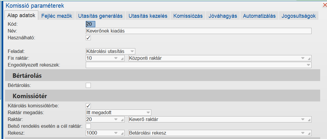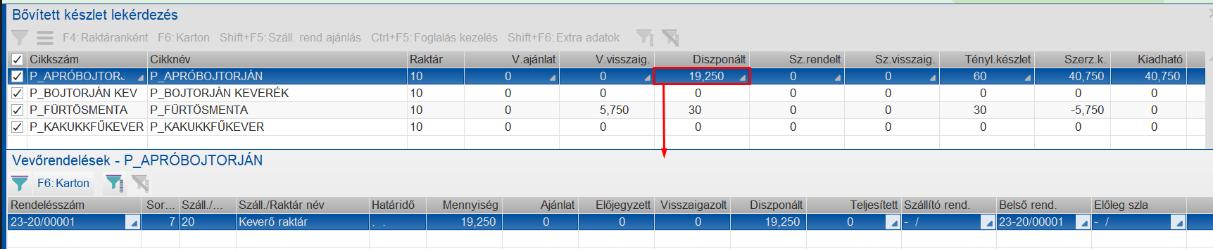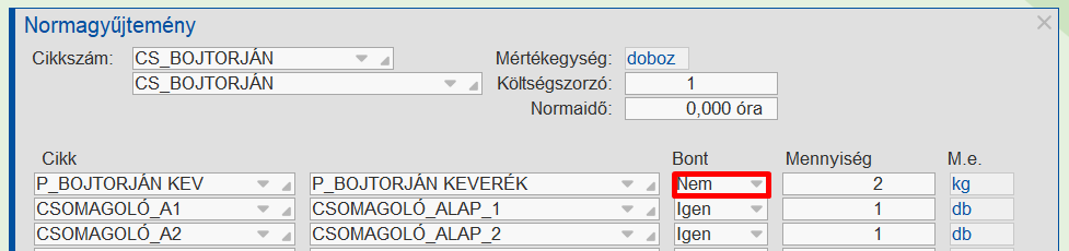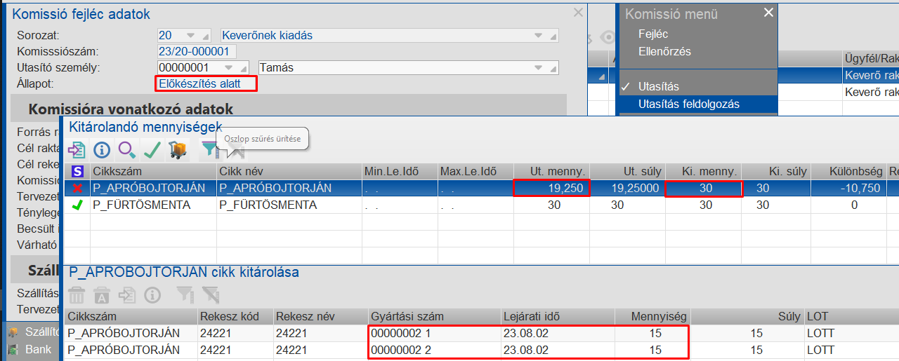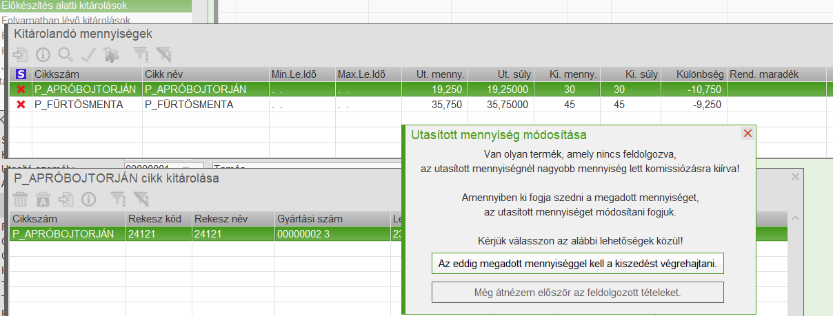 A felhasználó itt mondhatná, hogy ne is ez a két zsák legyen az üzembe áttárolva, hanem helyette a 30kg.