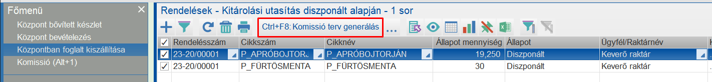 Az alapanyag raktárban látható, hogy melyik rendelés foglalja az árut.