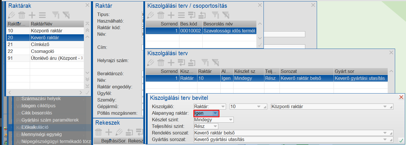 A gyártási utasítás mellé a program normagyűjtemény alapján alapanyag rendelést adott le az alapanyag raktár felé.