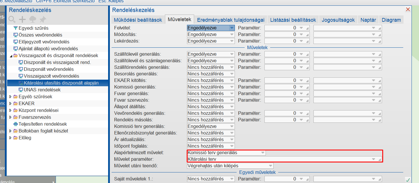 A foglalt áru átszállítására az utasítást egy erre a célra kialakított menüpontban lehet megtenni.