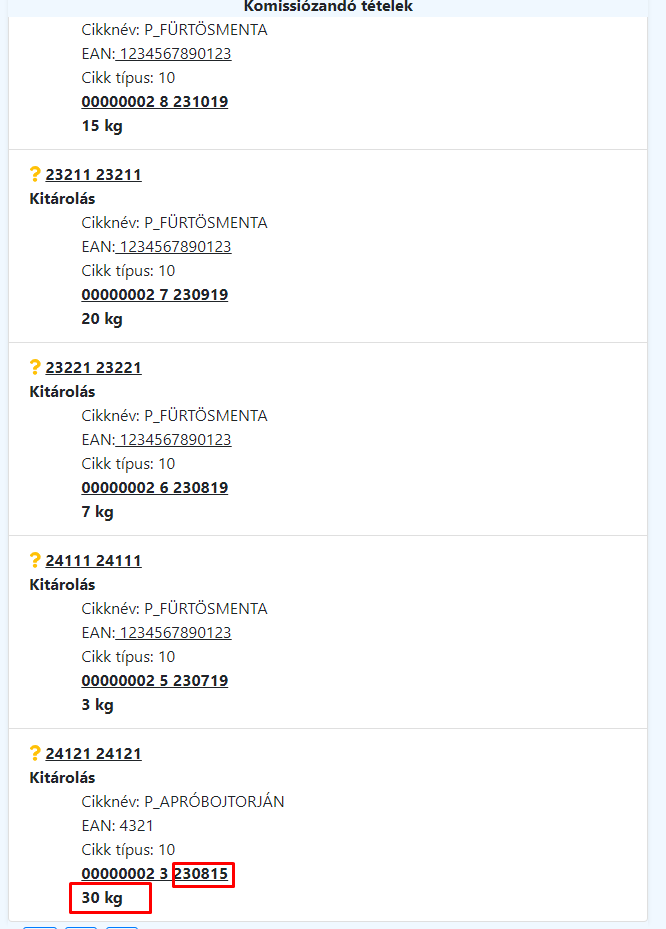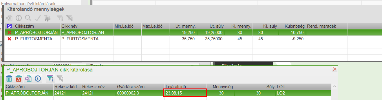 A felhasználó itt mondhatná, hogy ne is ez a két zsák legyen az üzembe áttárolva, hanem helyette egy későbbi lejárati idővel rendelkező 30kg-os zsák.