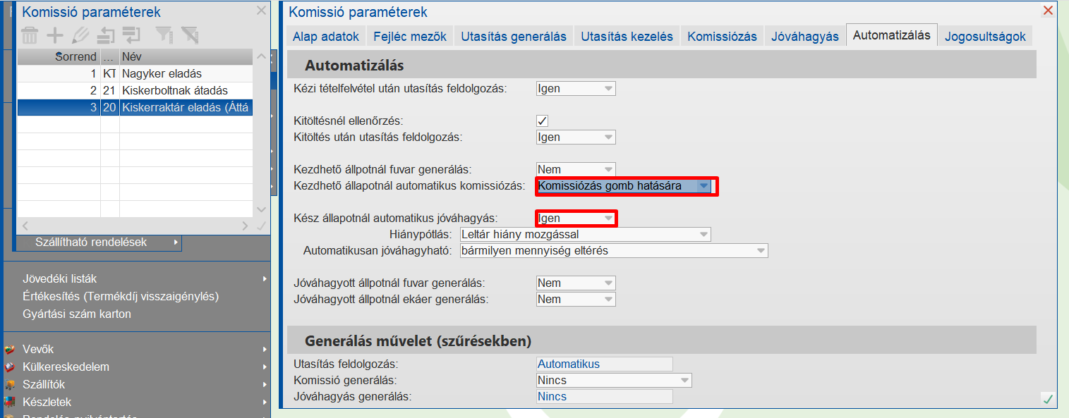 - a komissió utasítás generálása után az Feldolgozás műveletben eldöntik, hogy mit kell kiszedni a raktárról és
