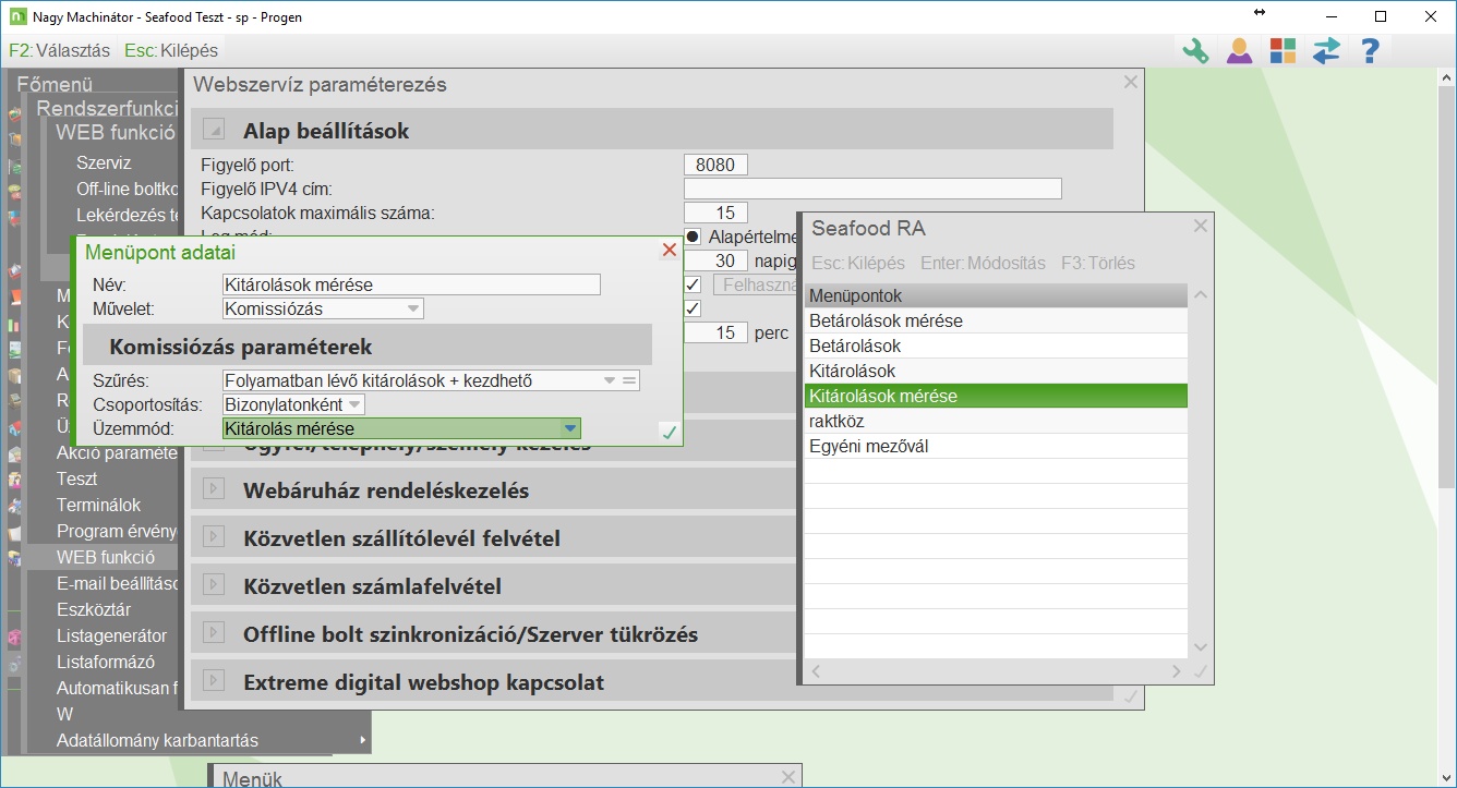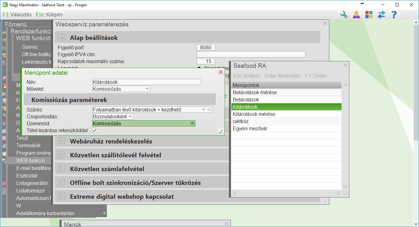 A funkció használatához Komissió modulon kívül a Web-alapú Online Nagy Machinátor modul licenszére is szükség van.