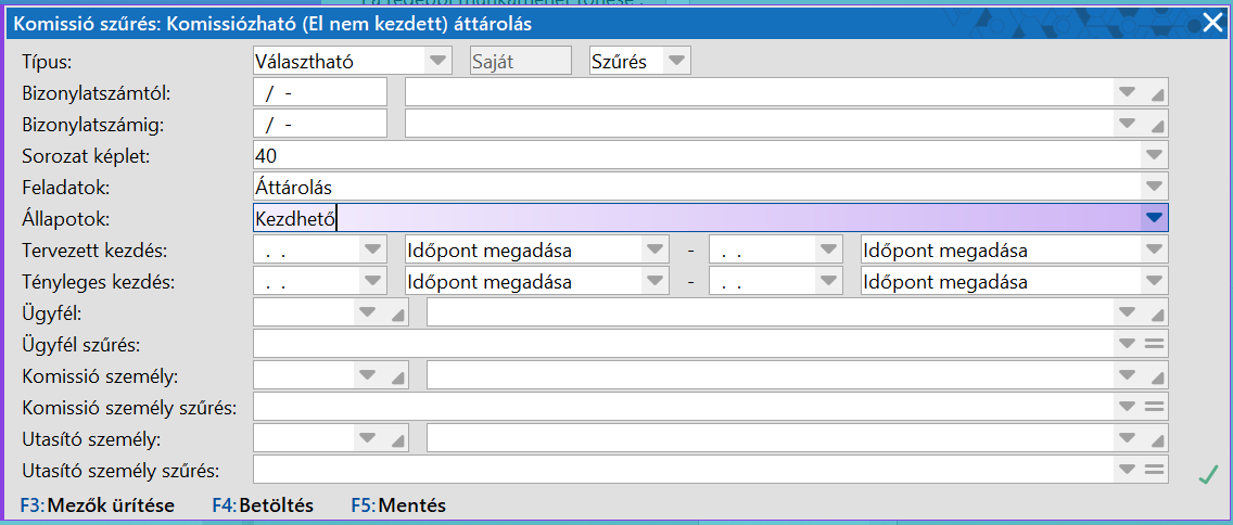 A funkció elindítása után ki kell választani egy Áttárolási utasítás sorozatot.