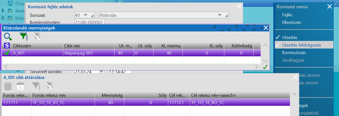Az utasítás feldolgozása során fogja meghatározni a program, hogy melyik raktárhelyről kell áttárolni a szükséges árut.