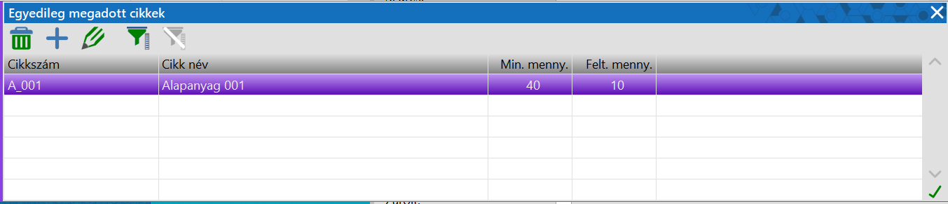 A minimális mennyiséget a Raktártörzsben lehet megadni.