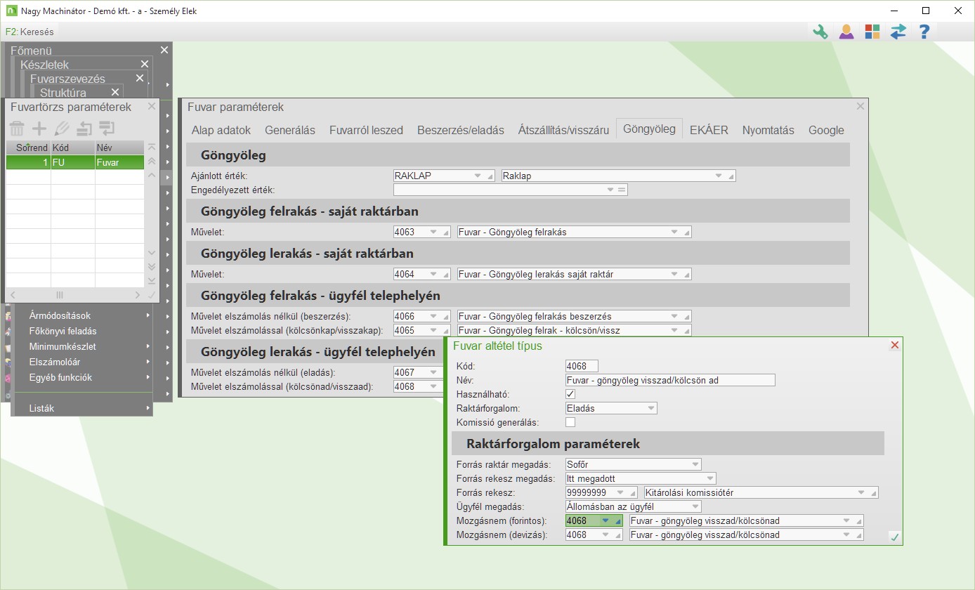 A fuvar- és komissió modulban lehetőség van az egyes tranzakciók során a göngyöleget kölcsönadni, ill kölcsönkapni. -> Göngyöleg kezelés