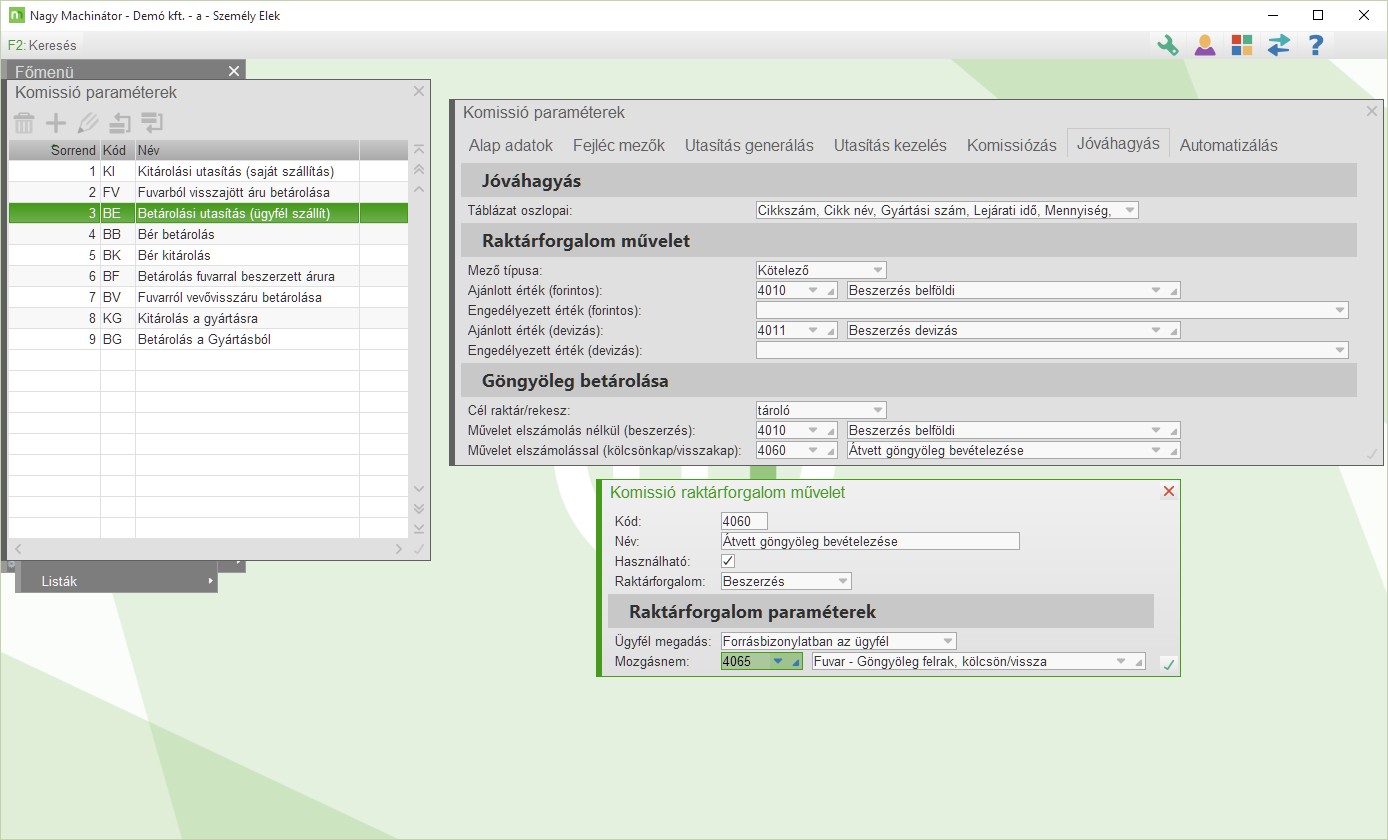 A lista a komissió és fuvarparaméterekben megadható mozgásnemekre készít egy egyenleget.