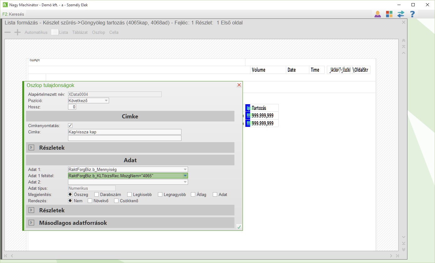 Mivel a lista forgalmi adatok alapján készül, az adatokat a legkorábbi mozgás időpontjától kell lekérdezni. Kötet szétválasztást nagyon meg kell gondolni. Vagy csak akkor lehet végrehajtani, ha éppen senki sem tartozik senkinek sem, vagy a szétválasztás után technikai mozgásokkal kell korrigálni.