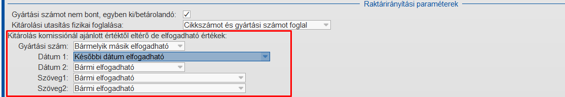 Amennyiben az alább beállítást alkalmazzák, a program meg fogja engedni a kiszedőnek, hogy ne a 30kg-os zsákot válassza, de a 19-én lejárót továbbra sem fogja elfogadni tőle.