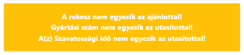 A sárga üzenet csak figyelmeztetés jelen esetben arra, hogy a kiszedő nem pontosan azt a terméket találta meg, de a feltételeknek akár meg is felelhet.