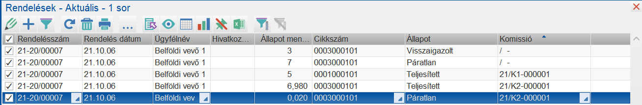 Nem egalizált áruk kitárolása esetén a program megvizsgálja, hogy teljesítettnek tekithető-e a rendelés.