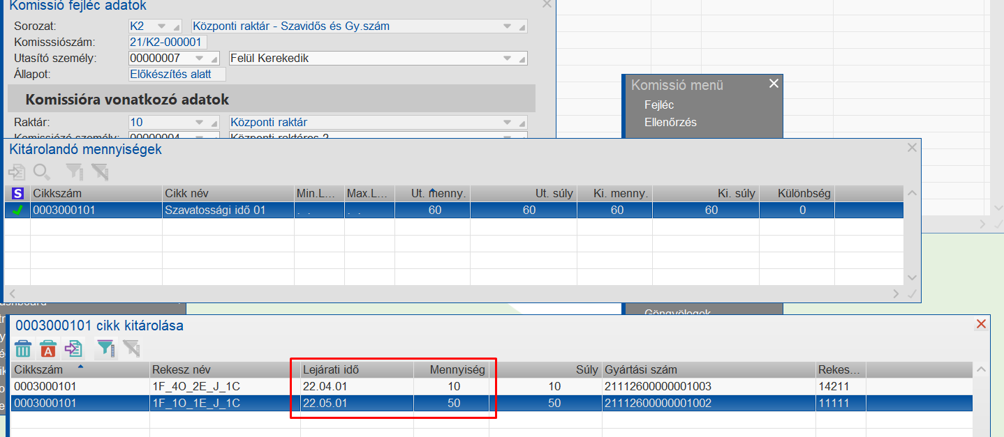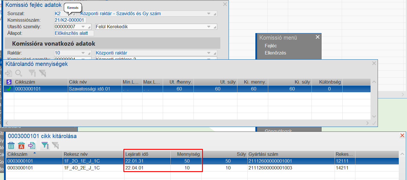 A raktárvezetőnek a képen látható helyen lehetősége van más rekeszből kiírni az árut.