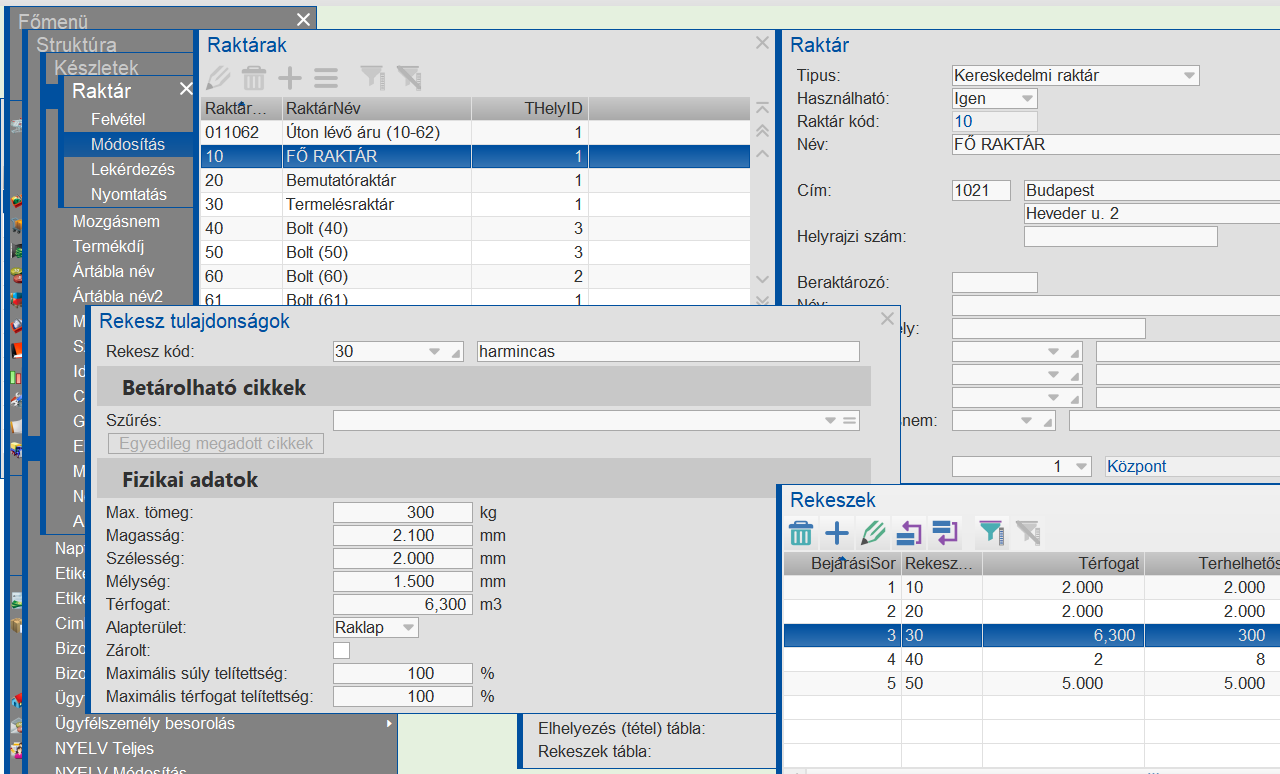 Dedikált rekesz: A raktártörzsben rekeszenként meglehet adni, hogy milyen termékeket lehet betárolni az adott rekeszbe.