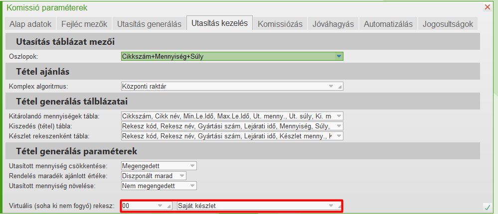 A szolgáltatás cikkek esetén a komissióparaméterezésben beállítható hiánykezelés (Komissió paraméterek/Automatizálás fül) nem lesz alkalmazva.
