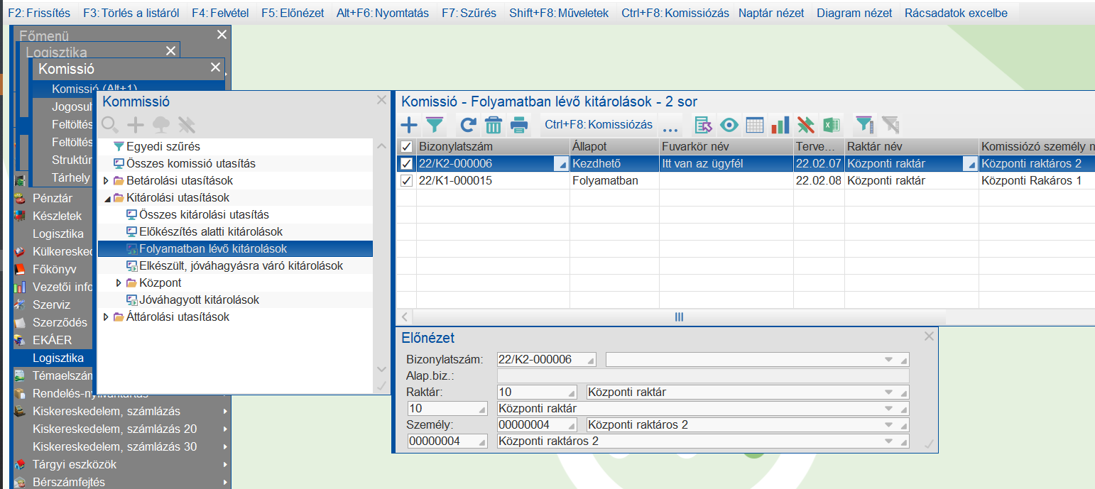 Navigáció: Logisztika > Raktárirányítás funkciói > Komissió bizonylat