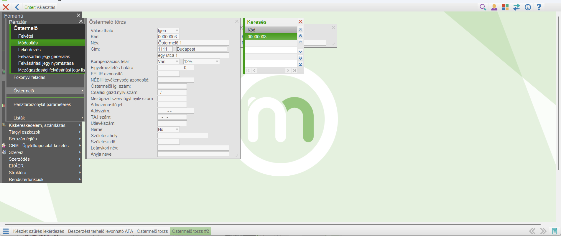 A modul azoknak az ügyfeleknek készült, akik őstermelőktől vásárolnak.