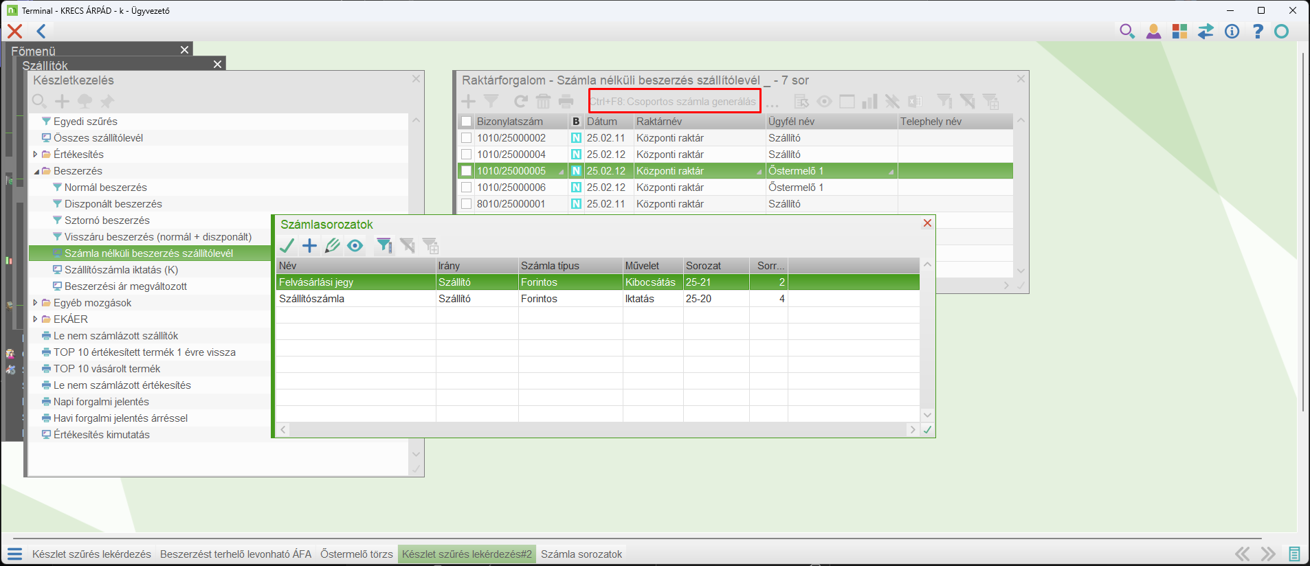 Készlet szűrésből Csoportos számla generálás művelettel lehet elkészíteni a Felvásárlási jegyet.