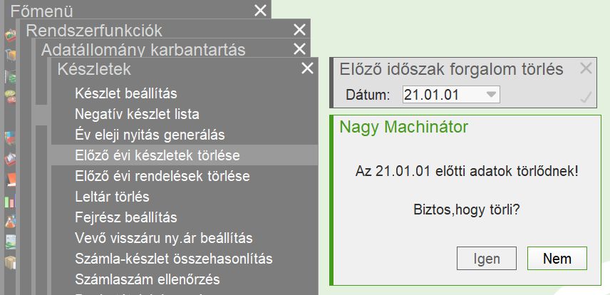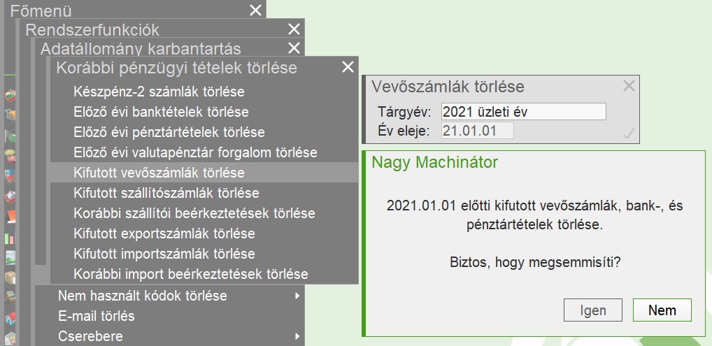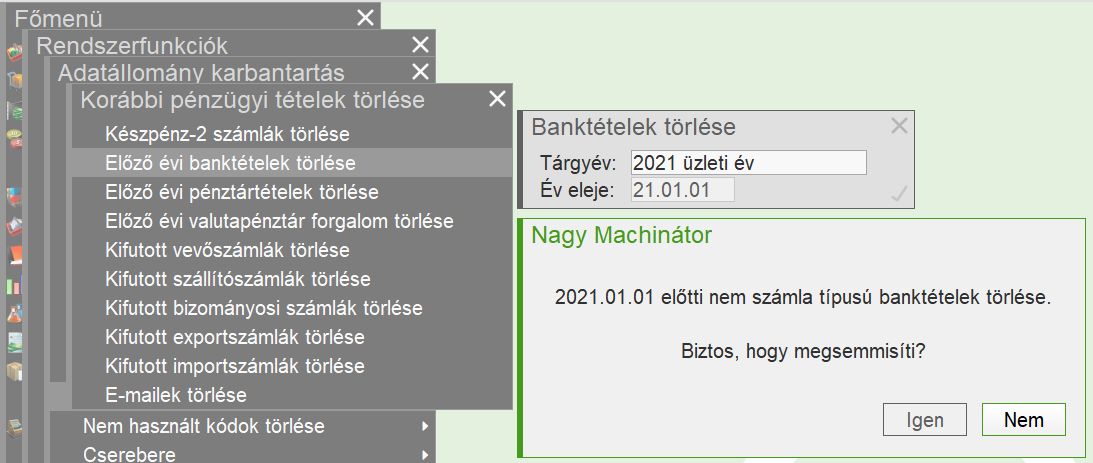 Az alábbi funkciókkal a korábbi évek már feleslegessé váló adatainak törlésére nyílik lehetőség.