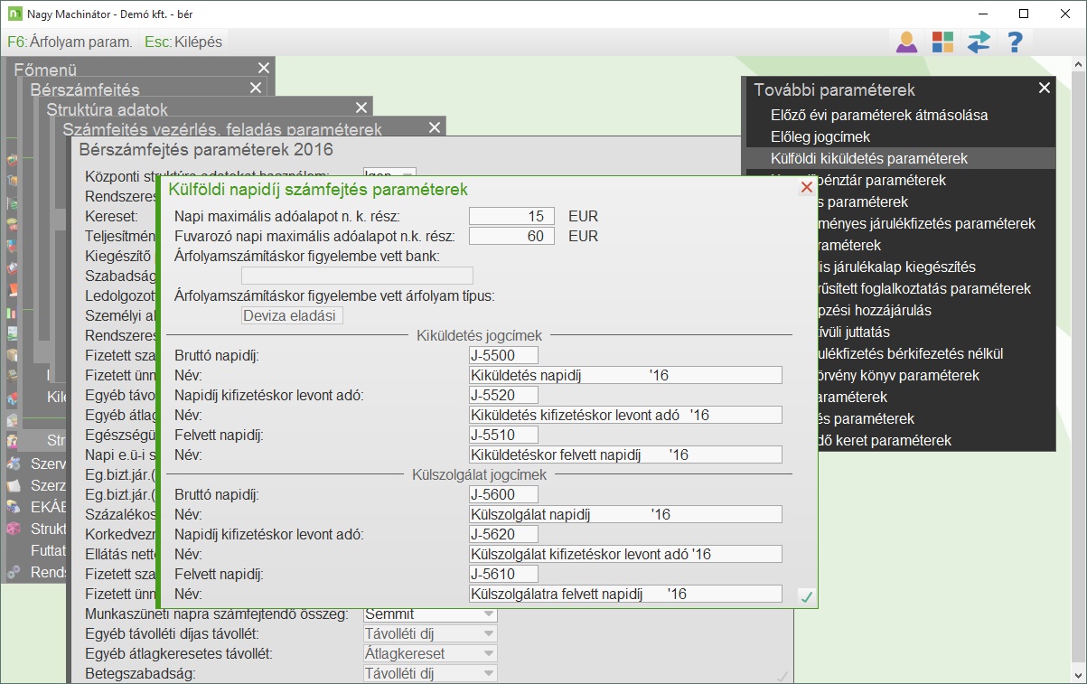 A külföldi kiküldetés kezdeti- és végső időpontját adhatjuk meg. A forintosítás a tárgyhónap előtti hónap 15. napja lesz |