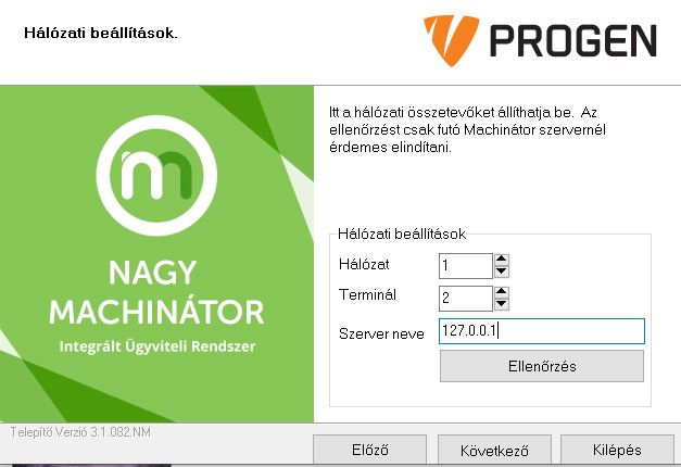 4. Telepítsünk RC terminált. Ehhez le kell tölteni a Partnerközpontból egy RC terminál telepítőt. A letöltött telepítő futtatása után adjunk meg egy új, még nem létező cél mappát, pl. C:\BigmacRC. A hálózat száma 1,a terminál száma 2, míg a szerver neve 127.0.0.1 legyen.
