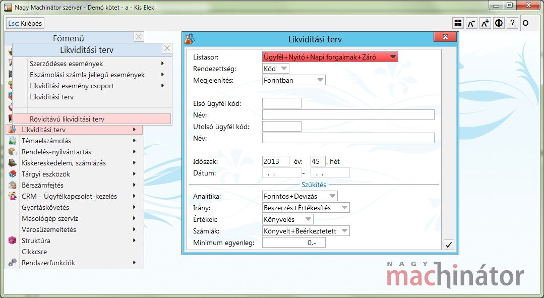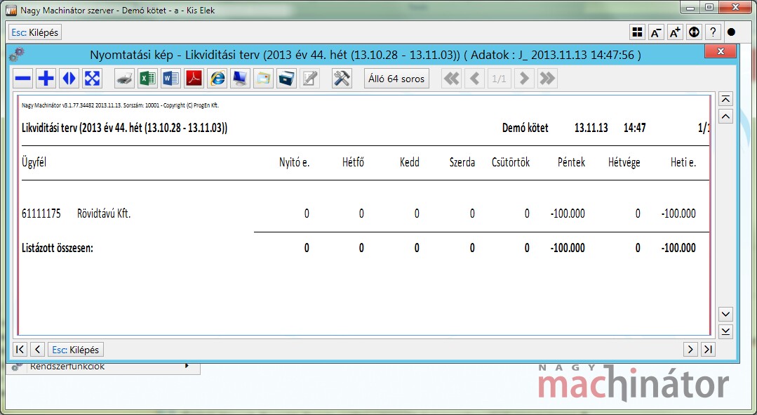 A listával ügyfelenkénti bontásban egy hétre állíthatunk össze likviditási tervet.